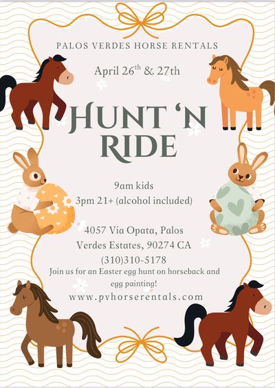 Saddle up for a one-of-a-kind Easter celebration with our Egg Hunt on Horseback! Ride through scenic trails as you and your horse search for hidden eggs, combining the thrill of a hunt with the joy of a leisurely ride. After the adventure, head back to the barn to unwind with festive Easter egg dyeing, tasty snacks, and refreshing beverages. Whether you’re a seasoned rider or just along for the fun, it’s the perfect way to celebrate spring!