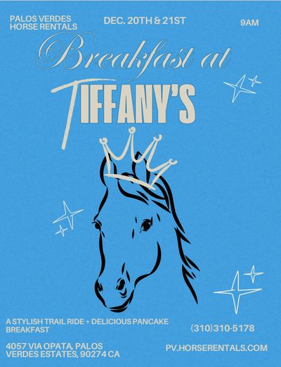 Enjoy a charming Breakfast at Tiffany’s–themed Pancake Breakfast Ride, where a peaceful morning trail ride ends with a delicious stack of warm pancakes and toppings. A perfect way to start the day with friends, family, or anyone who loves horses and a good breakfast. Limited spots available—reserve early! 🥞🐎✨